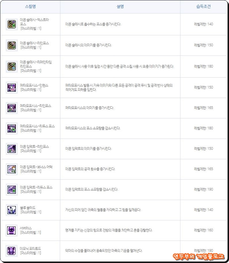 메이플스토리 데몬슬레이어 3차 스킬트리