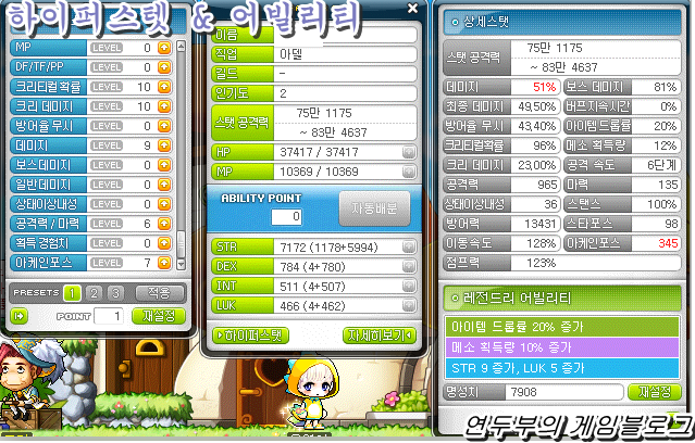 3. 메이플스토리 아델 하이퍼스텟 & 어빌티리