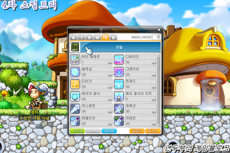 4차 전직을 한 뒤에도 "엑스퍼트" / "데몰리션" / "어테인" / "퍼펙션" 과 같은 패시브 스킬을 먼저 마스터 해주시는것을 추천드립니다.